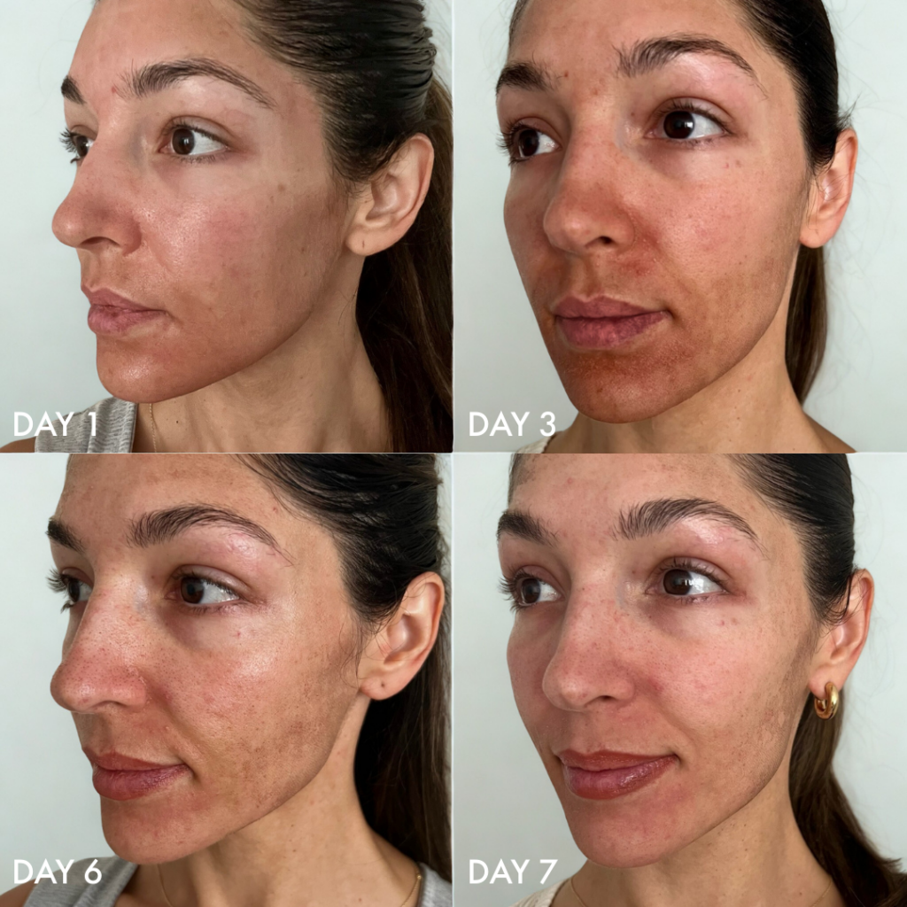 Day 3-4: The most noticeably dark and textured days. I was hit with some “post treatment blues.” I didn’t read this anywhere online but seeing my skin in such horrible condition was tough mentally. It probably didn’t help that I was holed up in my house avoiding people and the sun. That combo doesn’t exactly boost your mood.