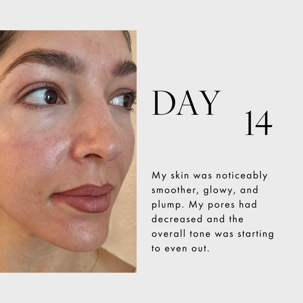 By Week 2ish, my skin looked SO GOOD. My skin’s texture was a lot smoother, my pores were noticeably smaller, the overall tone looked more even, and I had glowy, dewy skin. It felt worth the $650 I paid for the treatment.